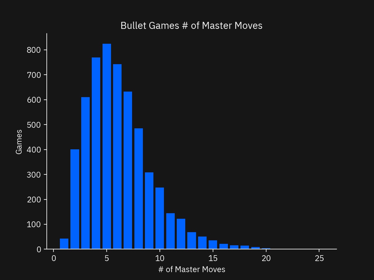 - Bar graph of the number of games played grouped by the number of Master moves featured