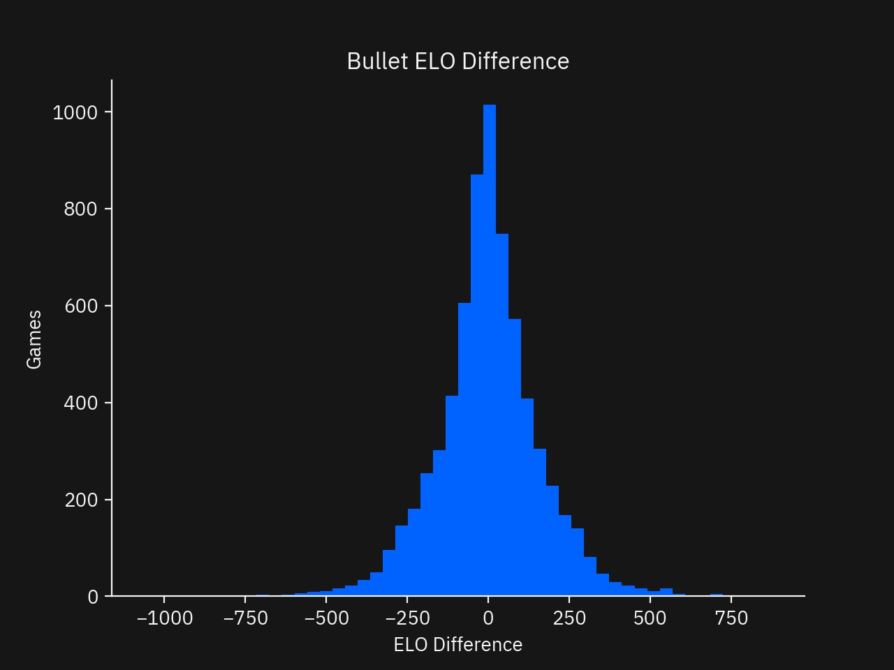 For the Bullet section, I did the same analysis but the graphs and conclusions were essentially identical to the Blitz section. I included the graphs in the Appendix for completeness.